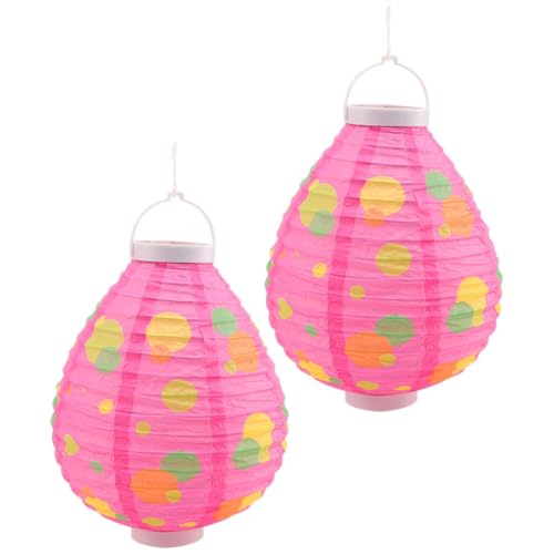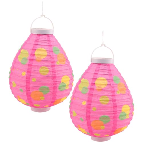 IWOWHERO 2pcs Pink Egg-shaped LED Paper Lantern Lights Decorative Hanging Lantern Lamps for Party and Festival Non-battery Operated for Indoor Use