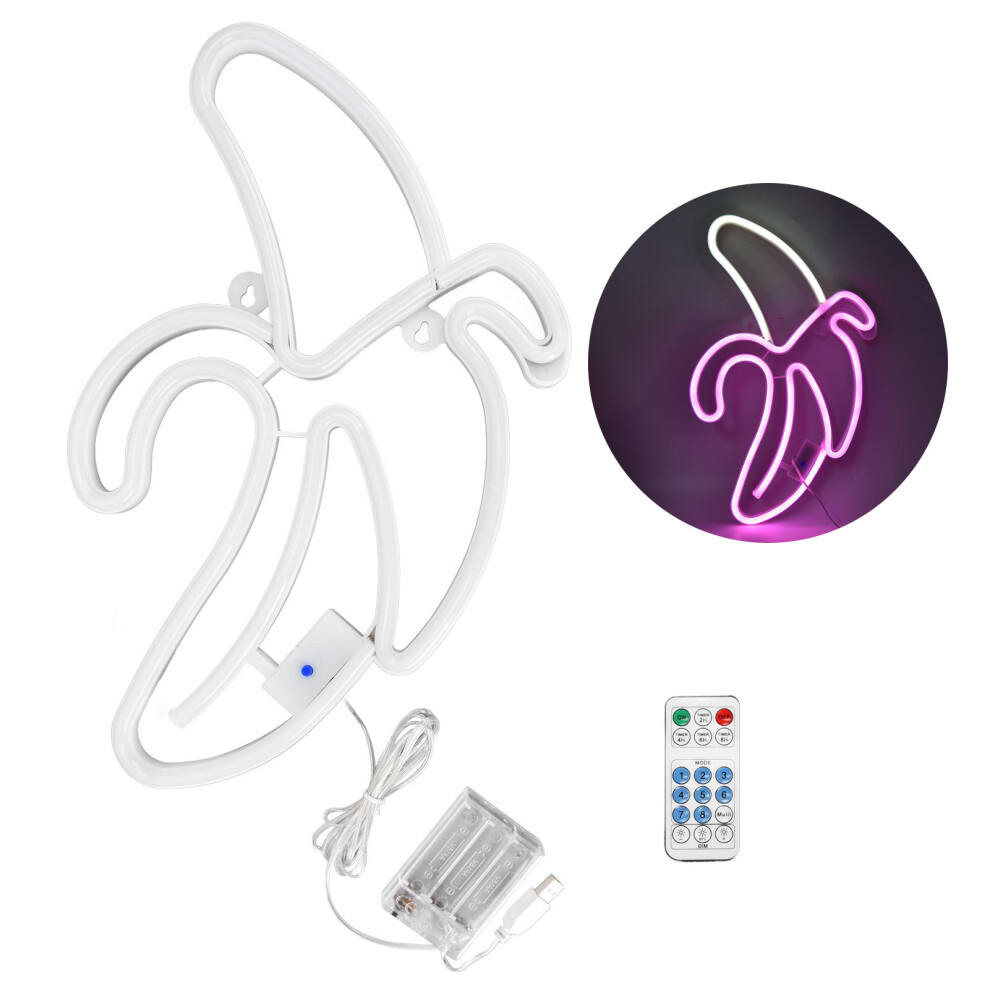 Battery Operated Banana Neon Signs LED Wall Decor Lights Night Lamps With Remote Control Hanging Decorative USB Operated Artistic Home Bedroom Party D