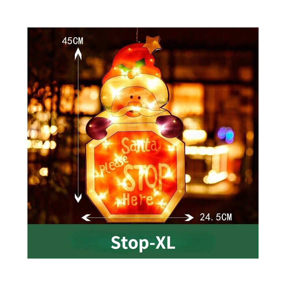 (Stop) Christmas Window Hanging LED Light Xmas Ornament Suction Cup Battery Decor Lamps