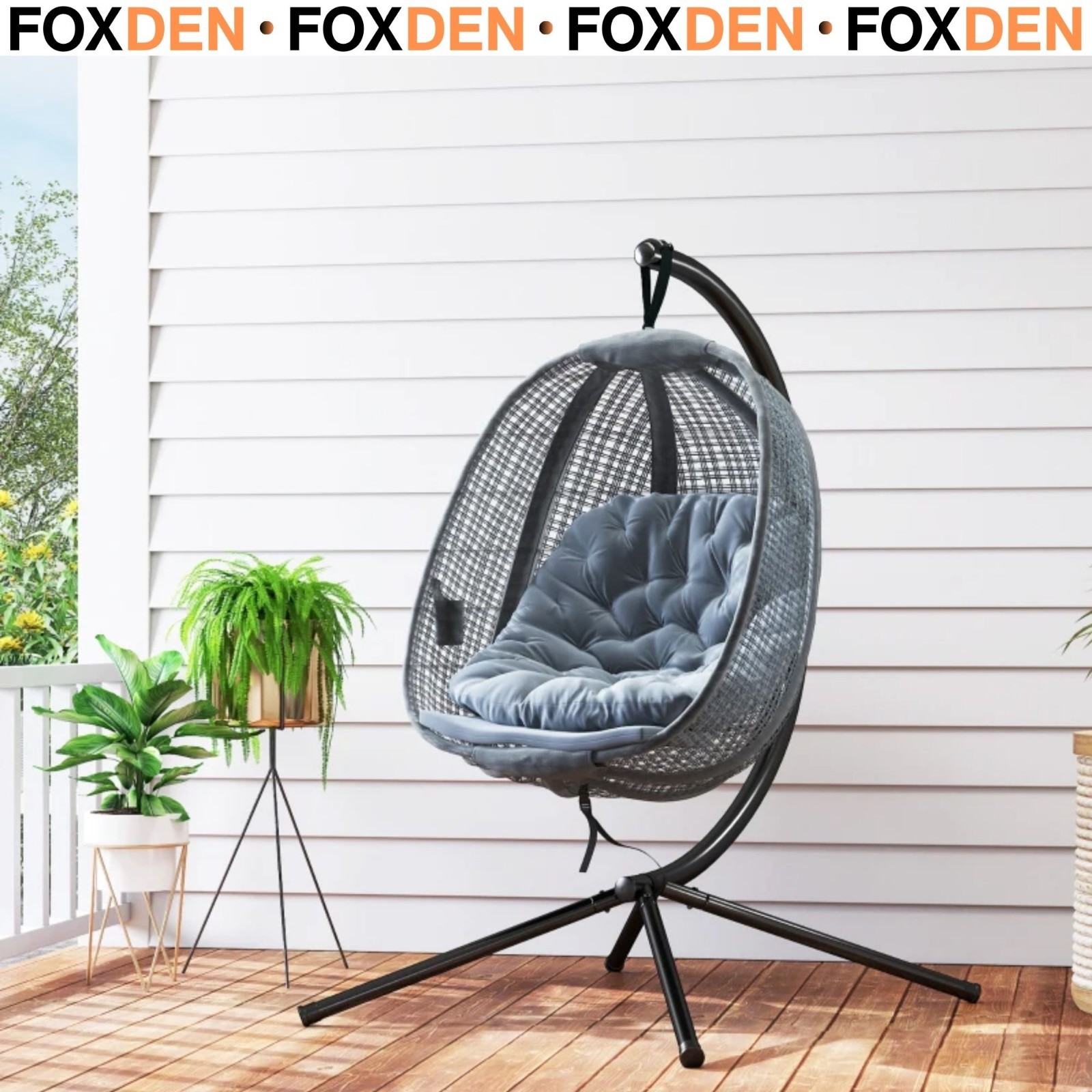 Samuel Alexander Grey Hanging Egg Chair With Stand Waterproof Cover And Cushions