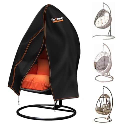 Enzeno Patio Hanging Egg Chair Cover, Outdoor Single seat Cocoon Swing Egg Chair Covers Waterproof with Zipper, 300D Heavy Duty Veranda Garden large Cover for egg chair on stand 190 * 115cm, Black