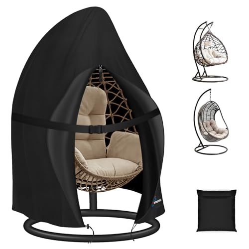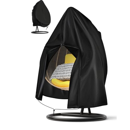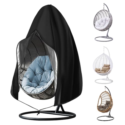 OFFCUP Hanging Egg Chair Cover, 230*200cm 210D Oxford Fabric Swing Chair Cover with Zipper, Waterproof Heavy Duty Windproof Furniture Protector for Outdoor Patio Garden (Black)