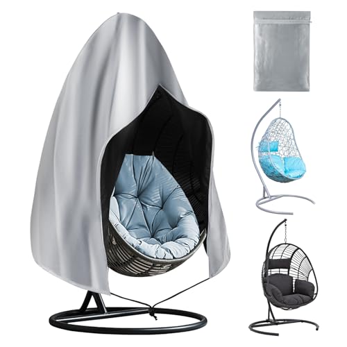 OFFCUP Hanging Egg Chair Cover, 230*200cm 210D Oxford Fabric Swing Chair Cover with Zipper, Waterproof Heavy Duty Windproof Furniture Protector for Outdoor Patio Garden (Gray)