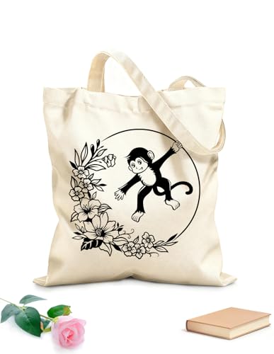 AILOONG Abstract Hanging Monkey Tattoo Silhouette With Flo Cotton Canvas Shoulder Bags 12 oz thick fabric Uses as a tool bag 35x40cm Large