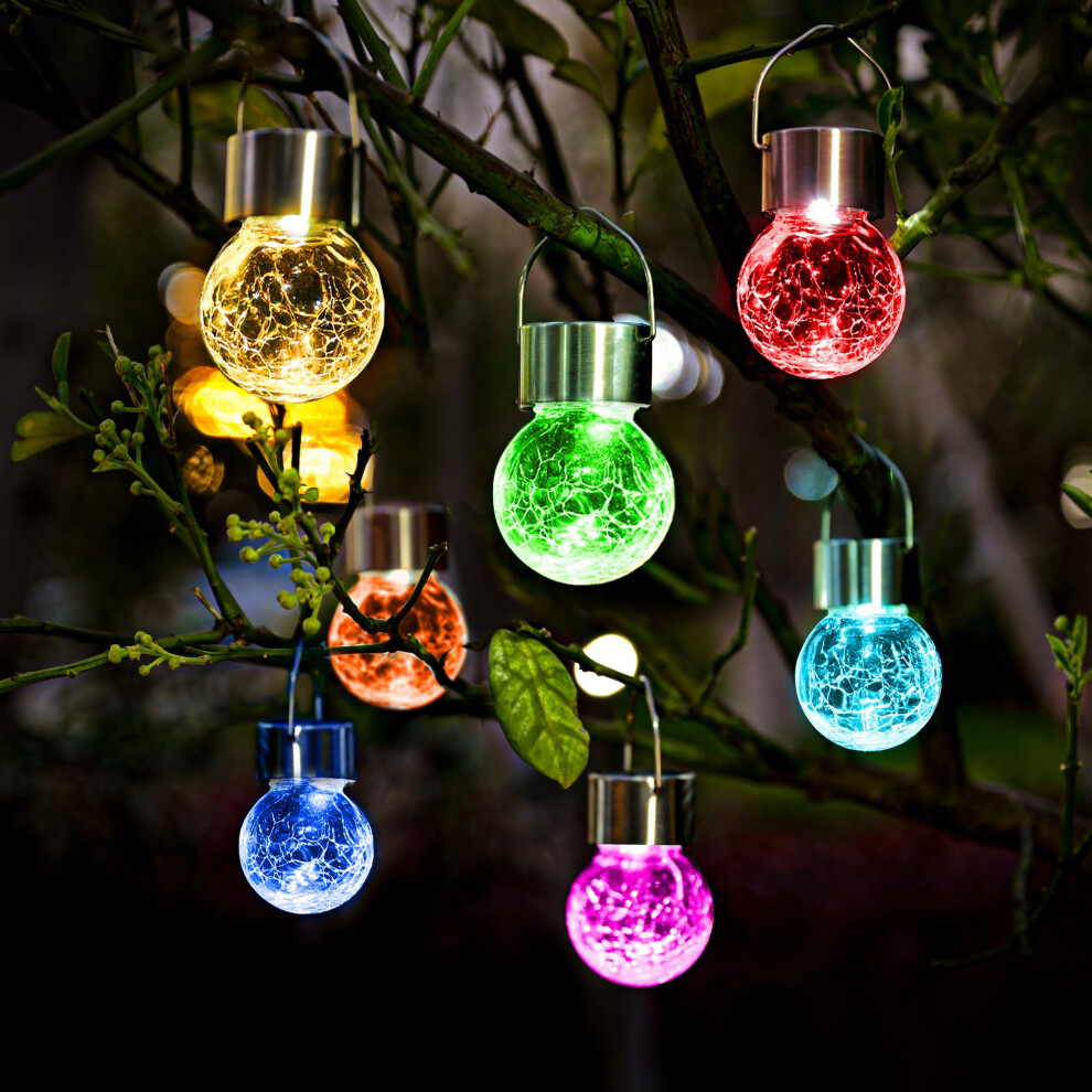 GIGALUMI 8 Pack Solar Hanging Lights: Multi-Color Changing Cracked Glass Hanging Ball Solar Outdoor Lights - Waterproof Lanterns for Garden, Yard, Patio, Lawn