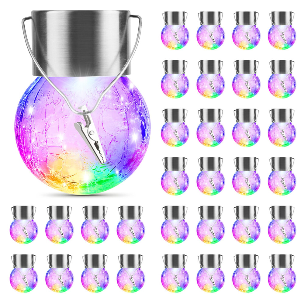 32 Pack Hanging Solar Lights Outdoor Decorative, Solar Globe Lantern with Handle and Clip