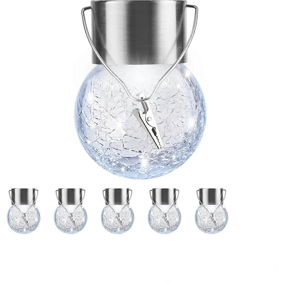 (As show, One size) Pack Solar Hanging Lights Outdoor, Waterproof Solar Lantern with Handle and Clip, Cracked Glass Decorative Balls for Christmas Tre