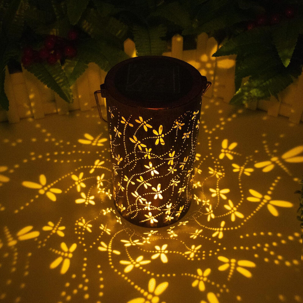 Dragonfly Solar Outdoor Lanterns Hanging Solar Lights Outdoor Waterproof Garden Light, Metal Lantern Solar Table Light LED Lantern Waterproof
