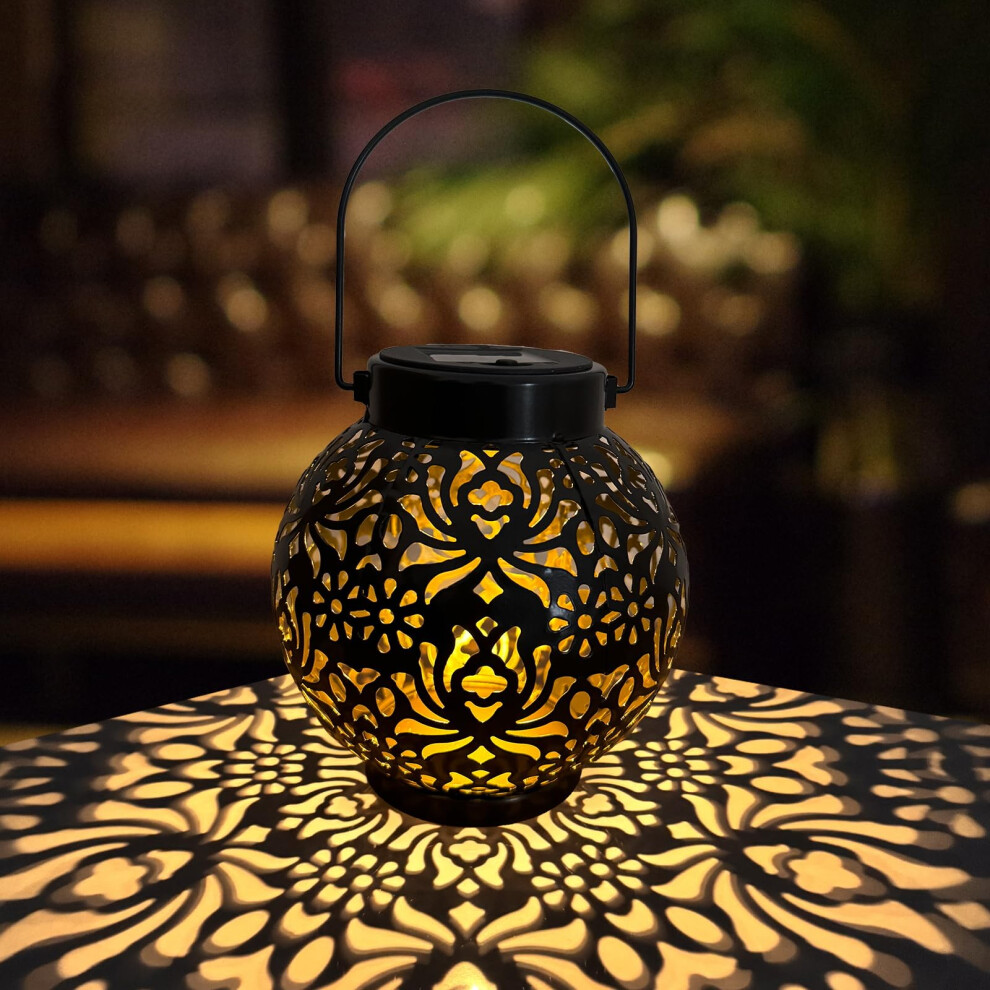 Yowin Solar Lanterns for Outside, 2 Pack Hanging Solar Lights Outdoor Garden with Flickering Candle Moroccan-Style LED, Auto On/Off Waterproof Table Lamp, Patio Pathway Balcony Festive Decorations
