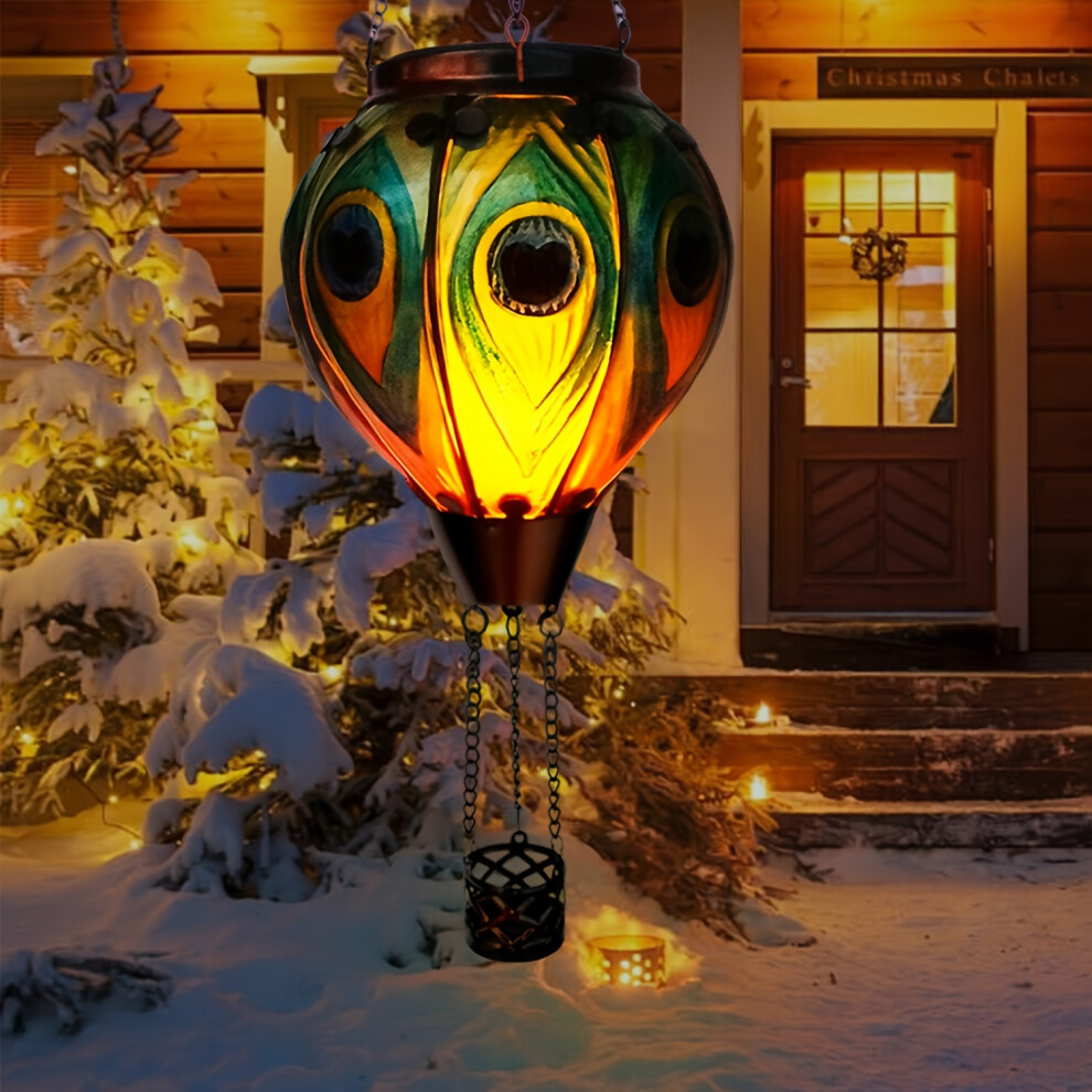 (Peacock eye hot air balloon) Hot Air Balloon Sunlights With Flashing Flame Lights, Hanging Solar Lights Outdoor Garden Decoration