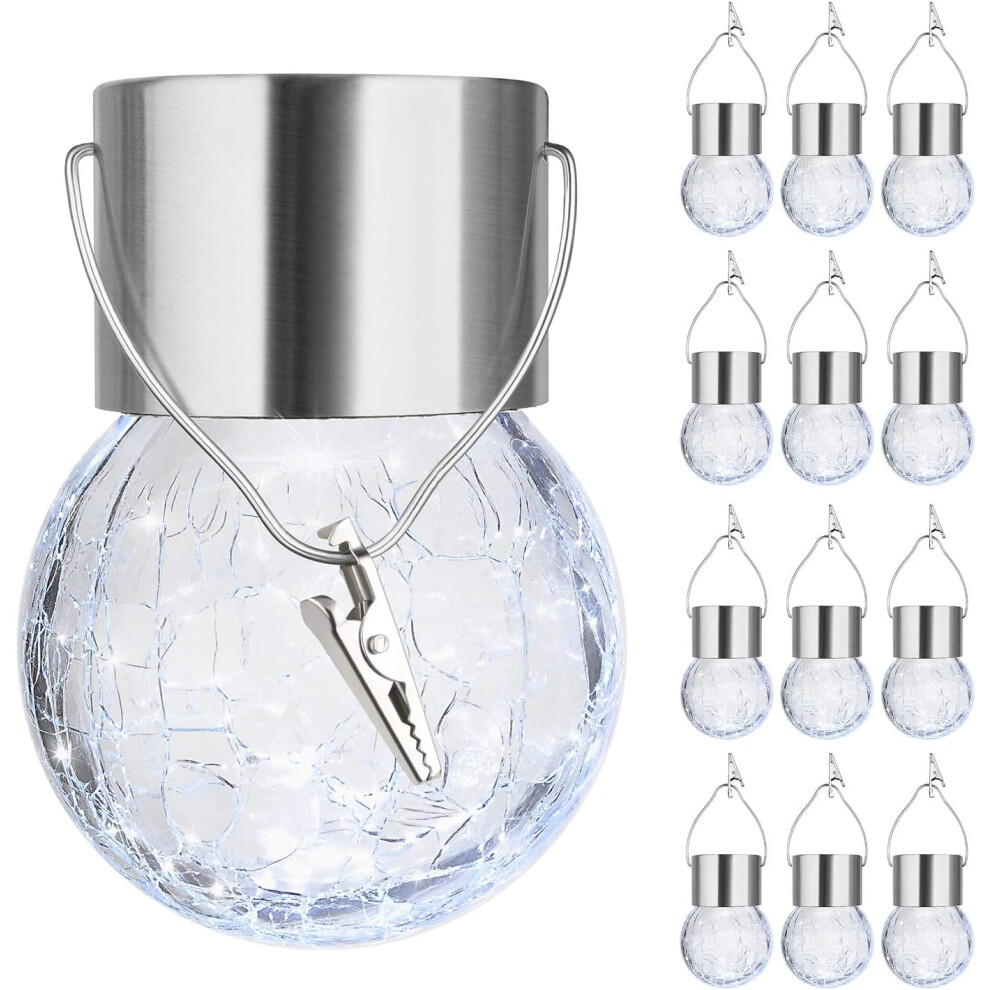 12-Pack Hanging Solar Lights Outdoor,Decorative Cracked Glass Ball Light,Solar Powered Waterproof Globe Lighting with Handle for Garden(Cool White)