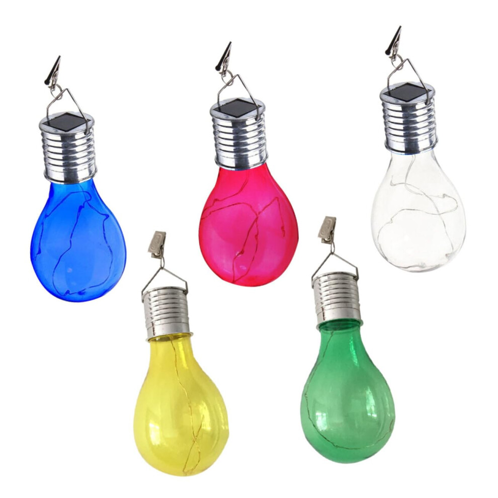 5 Pieces Hanging Solar Lights for Outdoor Area, Decorative Solar-Powered Lights, Outdoor Solar Lights with Bulb, Silver Plastic