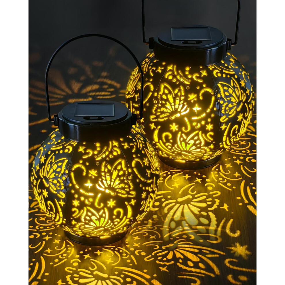 2025 Newest Solar Lanterns Light, KALAHOL 2 Pack Outdoor Lanterns for Garden with Beautiful Pattern, IP44 Hanging Solar Lights Outdoor Garden for Out