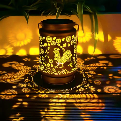 Cawabocy Farmhouse Chicken Birthday Gifts for Men Garden Decor, Outdoor Waterproof Hanging Rooster Solar Lantern Lights Ornaments, Gardening Gifts for Backyard Patio Table Yard Balcony Lawn Pathway
