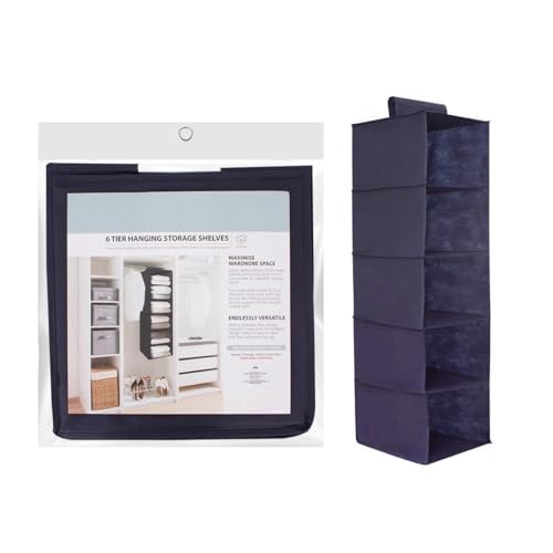 Shop4allsorts 6 Tier Hanging Wardrobe Storage Organiser - Compact Fabric Storage Shelves - Slim Navy Blue Clothes Rack - 120cm x 30cm - For Home, Caravan, Bedroom, Bathroom - 6 Shelf Organiser