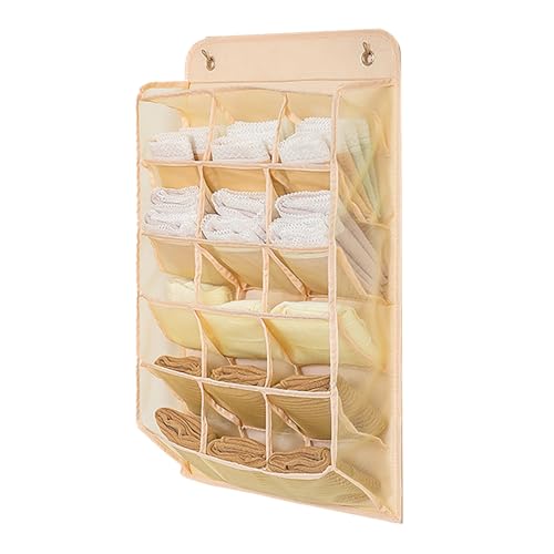 LIYJTK Underwear Organizer Mesh Oxford Cloth PP Board Wall Shelf Wardrobe Hanging Storage Bag (15 Pockets Beige)