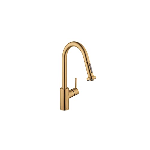hansgrohe Talis S² Kitchen Faucet 1-Handle 16-inch Tall Pull Down Sprayer in Brushed Gold Optic, 14877251