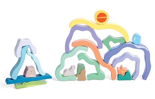 Hape Nature Scene Stacking Blocks – 22-Piece Set with Scenic Trees, Animals & Mountains – Ages 12M+