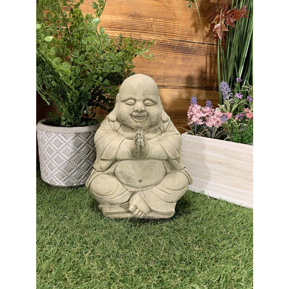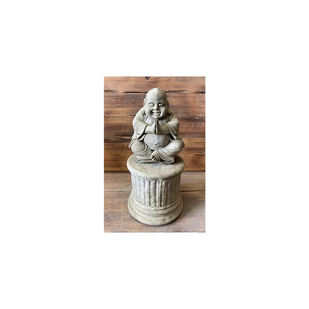 STONE GARDEN HAPPY SMILING PRAYING BUDDHA BUDDAH STATUE ON PLINTH ORNAMENT