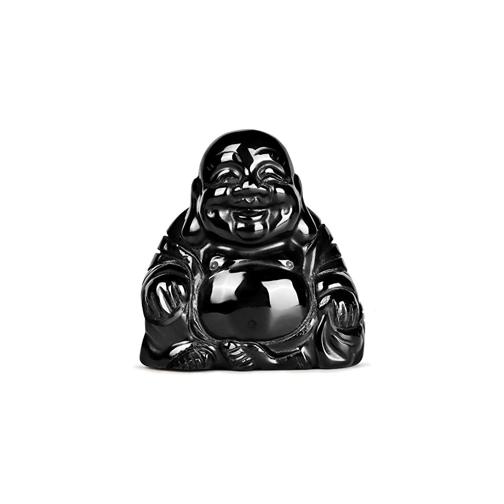 2" Black Obsidian Crystal Laughing Happy Buddha Statue Buddha Ornaments Sitting Sculpture Decor Zen Yoga Figurine Feng Shui Good Luck Indoor Home