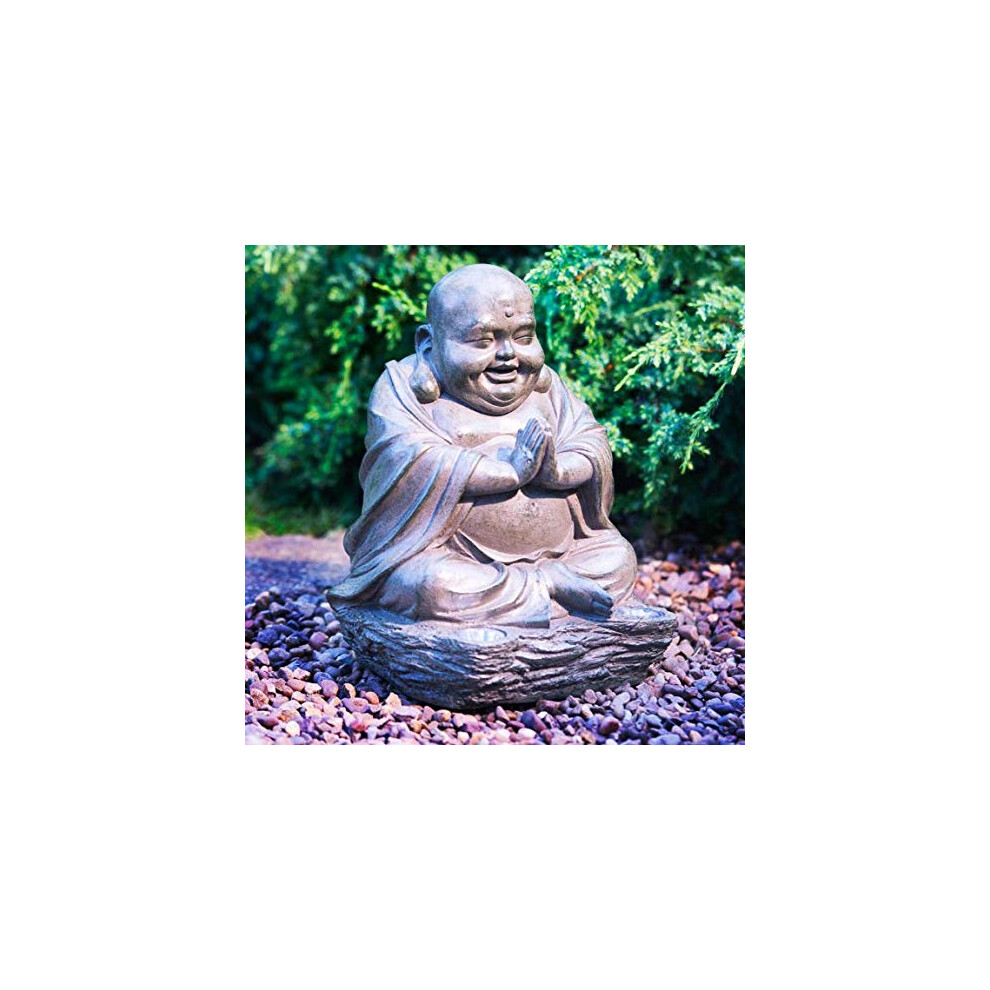 J and L Stone Ornaments Happy Smiling Praying Buddha Statue - Grey