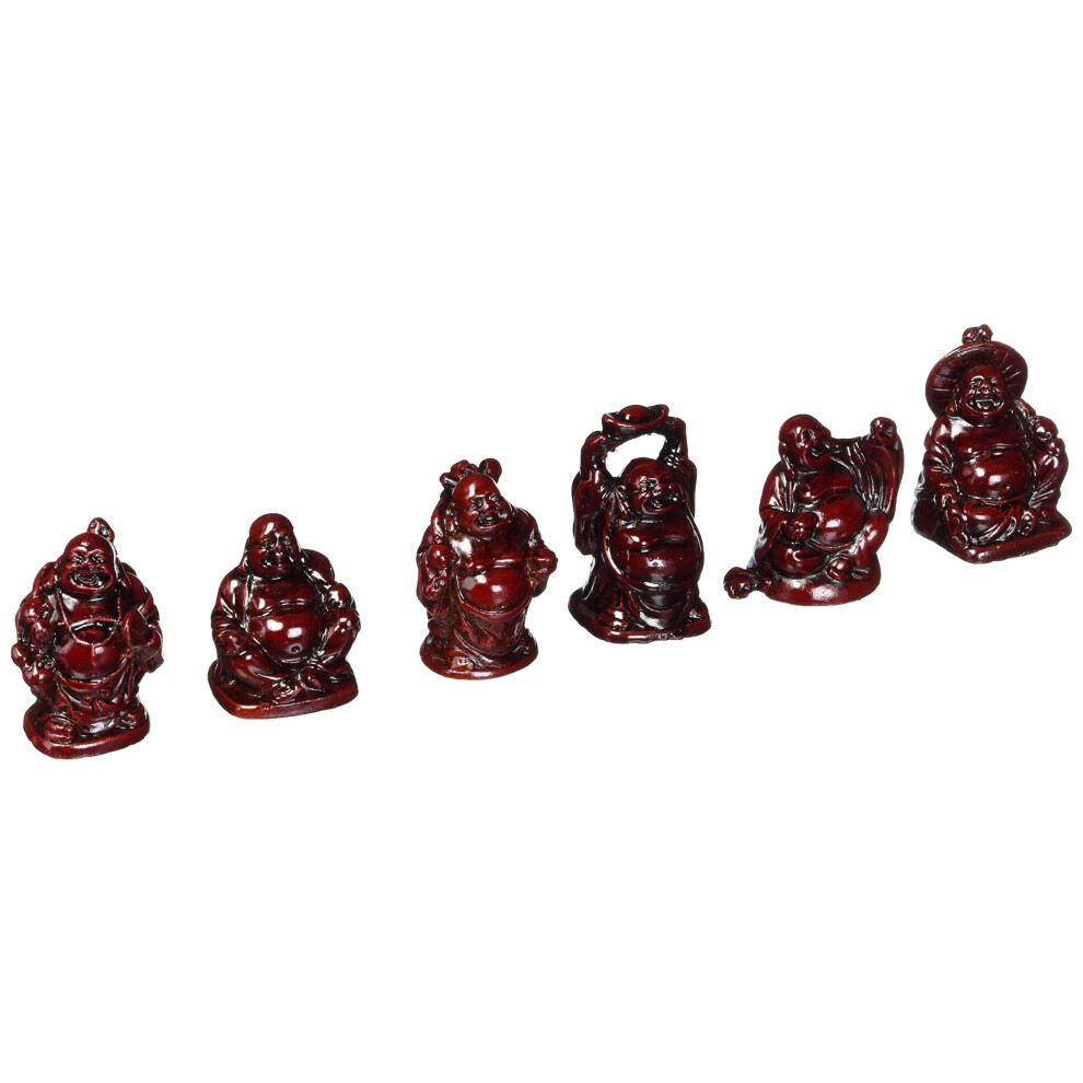 JapanBargain 3578 Set of 6 Buddha Statues Laughing Buddha Lucky Buddha Happy Buddha Gods Figures Fengshui Decoration Rosewood Color