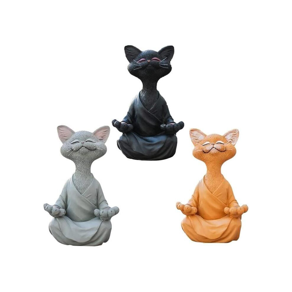 Meditating Cat Statue Set of 3 - Happy Cat Buddha - Zen Cat Statue for Meditation or Yoga