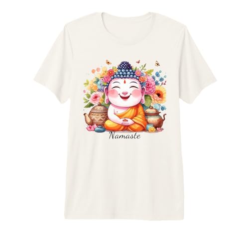 Happy Buddha Yoga Namaste with Tea and Flowers Premium T-Shirt