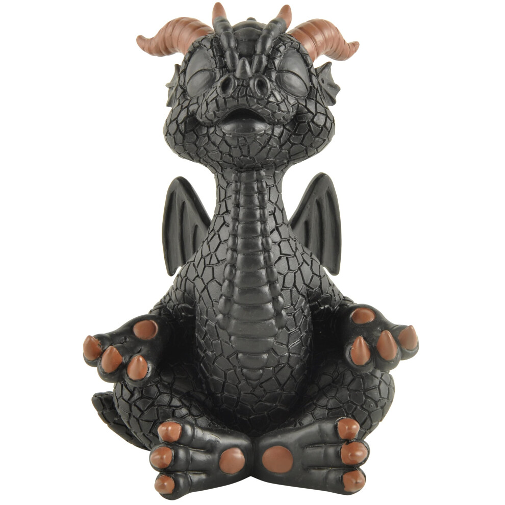 JFSM INC Black Happy Dragon Buddha Meditating Zen Yoga Figurine Fantasy Decor Collectible Statue