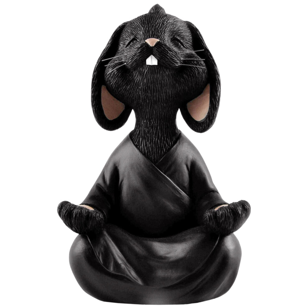 JFSM INC Whimsical Happy Bunny Black Buddha Figurine Meditation Yoga Collectible Happy Bunny Collection Bunny Lover Gifts