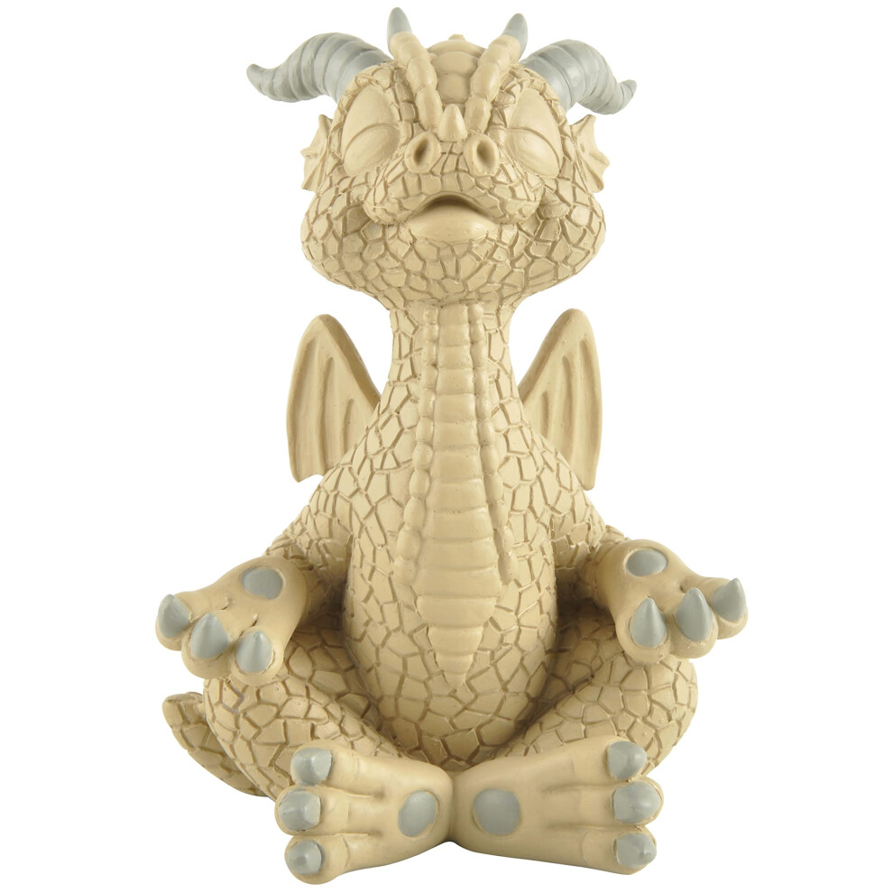 JFSM INC. Beige Happy Dragon Buddha Meditating Zen Yoga Figurine Fantasy Decor Collectible Statue