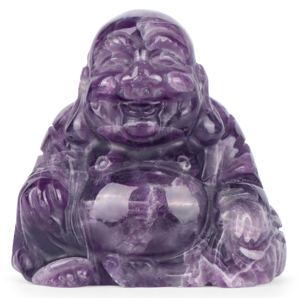 Artistone Amethyst Crystal Buddha Statue 2 Inch Hand Carved Pocket Sitting Maitreya Laughing Happy Buddha Stone Figurine Healing Crystal Gemstone for