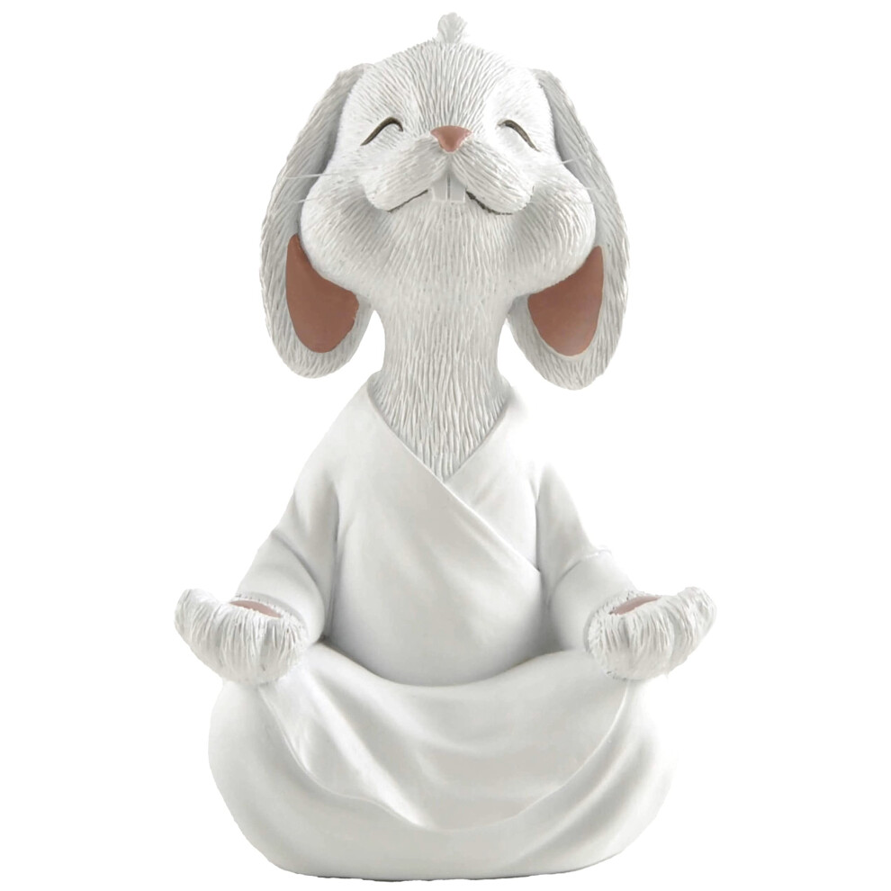 JFSM INC Whimsical Happy Bunny White Buddha Figurine Meditation Yoga Collectible Happy Bunny Collection Bunny Lover Gifts
