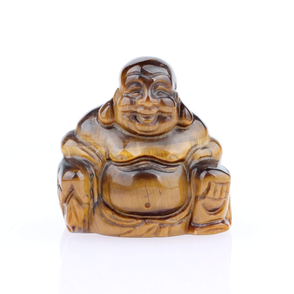 YWG Stone Yellow Tiger Eye Healing Crystal Gemstone Carved Laughing Happy Buddha Feng Shui Figurines Wealth and Good Luck 1.5""""