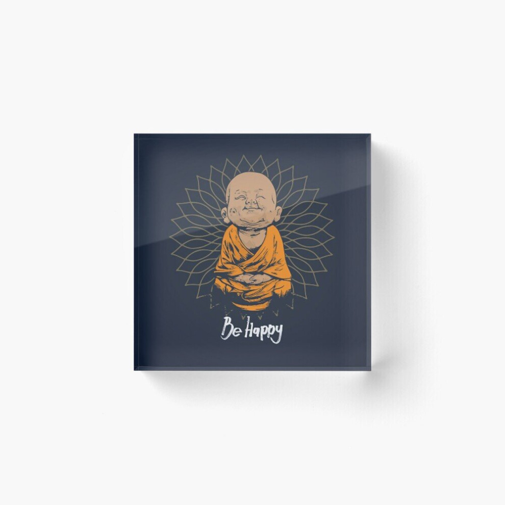 Acrylic Block Be Happy Little Buddha - cute buddha good vibes and positivity funny t Cube Art Prints Gifts 6 x 6 inch