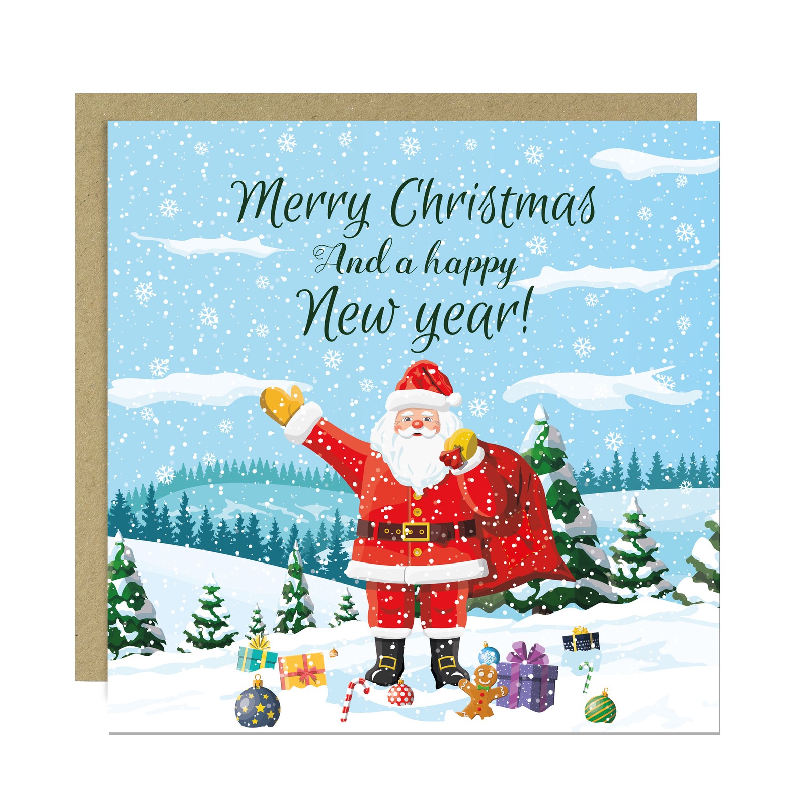 Merry Christmas Happy New Year Card For Friends and Family 145x145mm Santa Cards