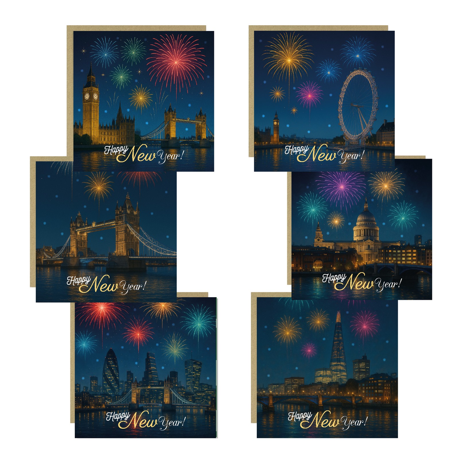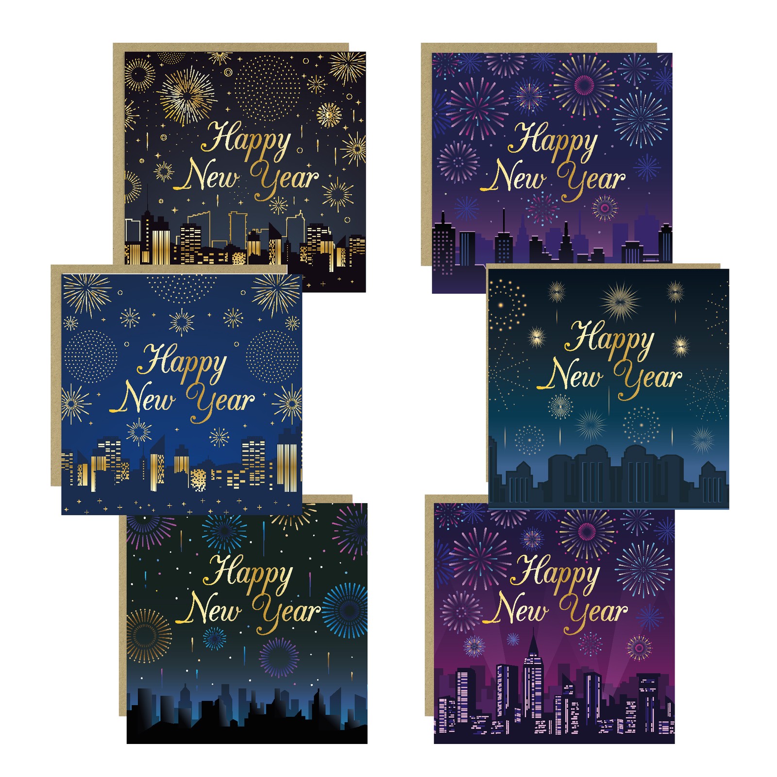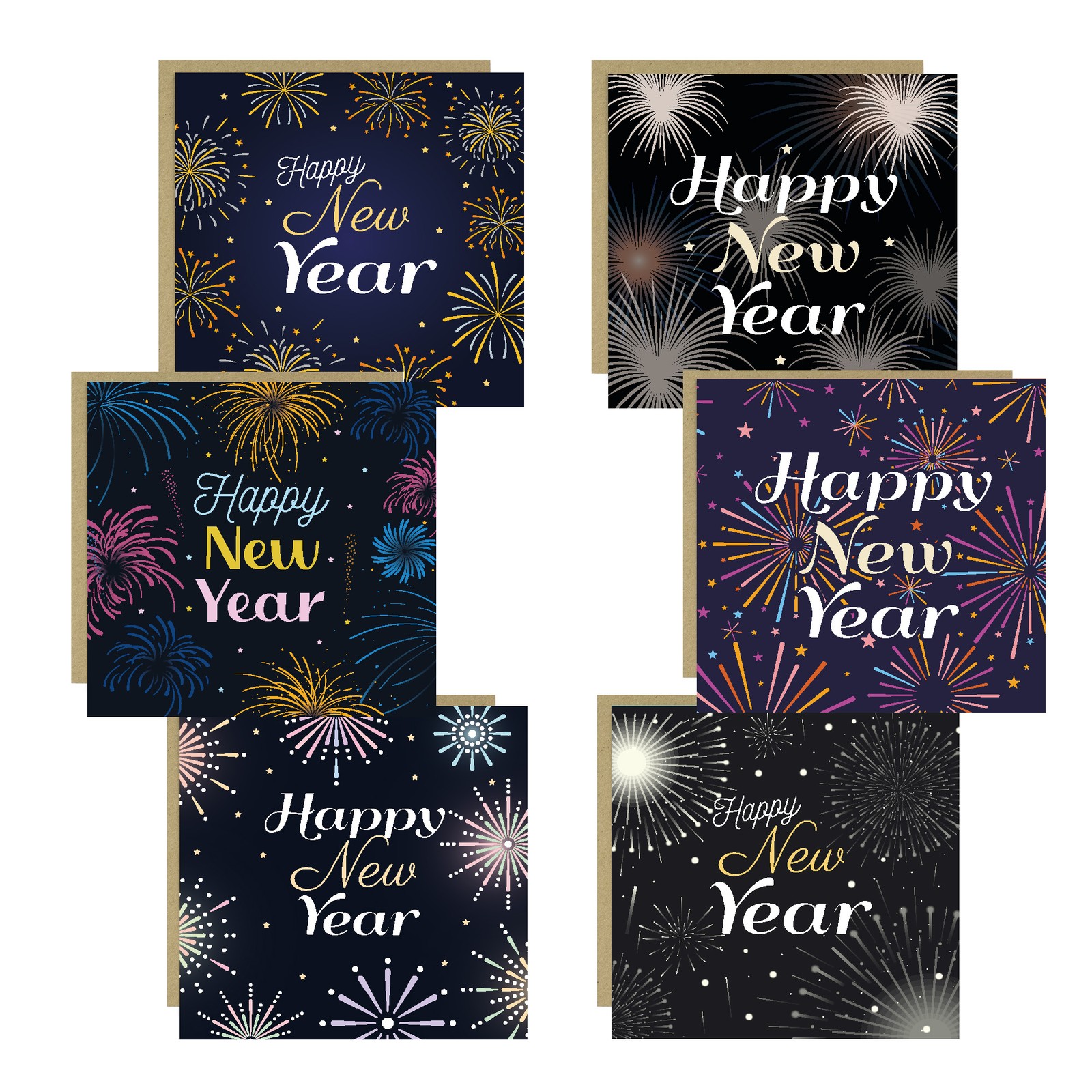 Pack 6x Happy New Year Cards Multipack New Years Eve Cards With Kraft Envelopes