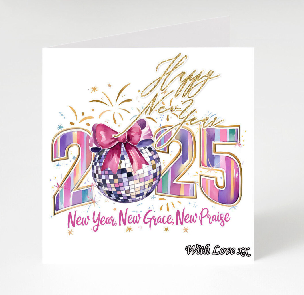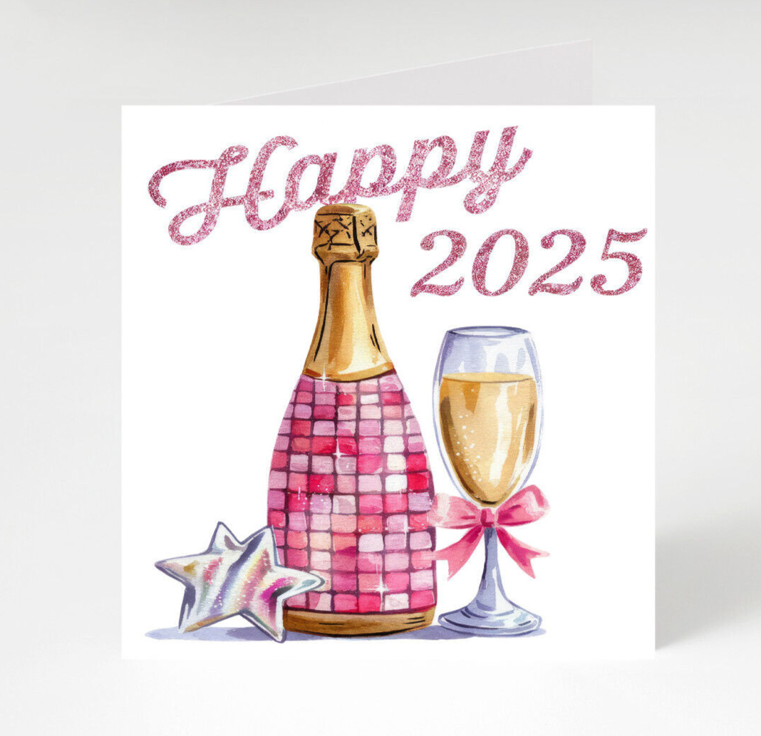 Happy New year 2025 cards pack of 4, Pink New Year cards 2025 x 4, Happy 2025