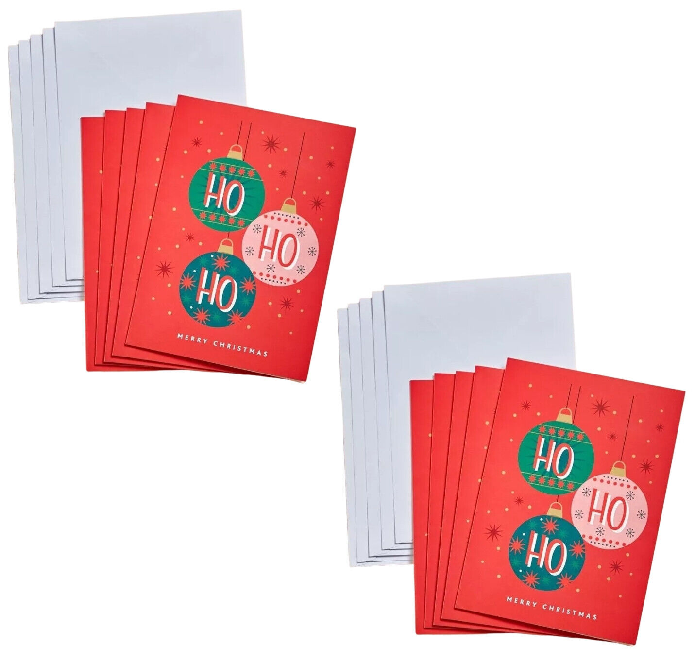10 PACK XMAS CARDS | Christmas Ho Ho Ho Baubles 15cm x 10½cm | HAPPY NEW YEAR