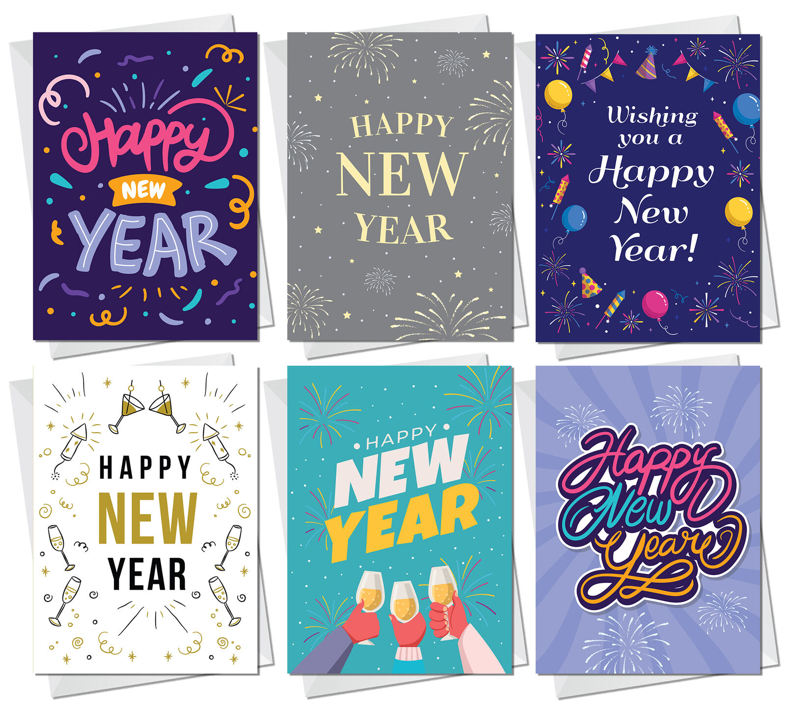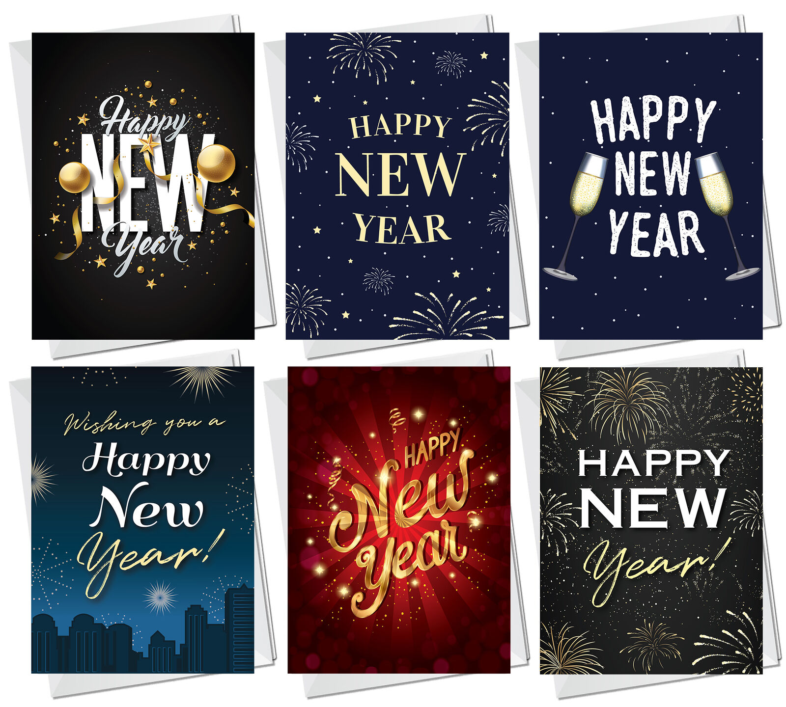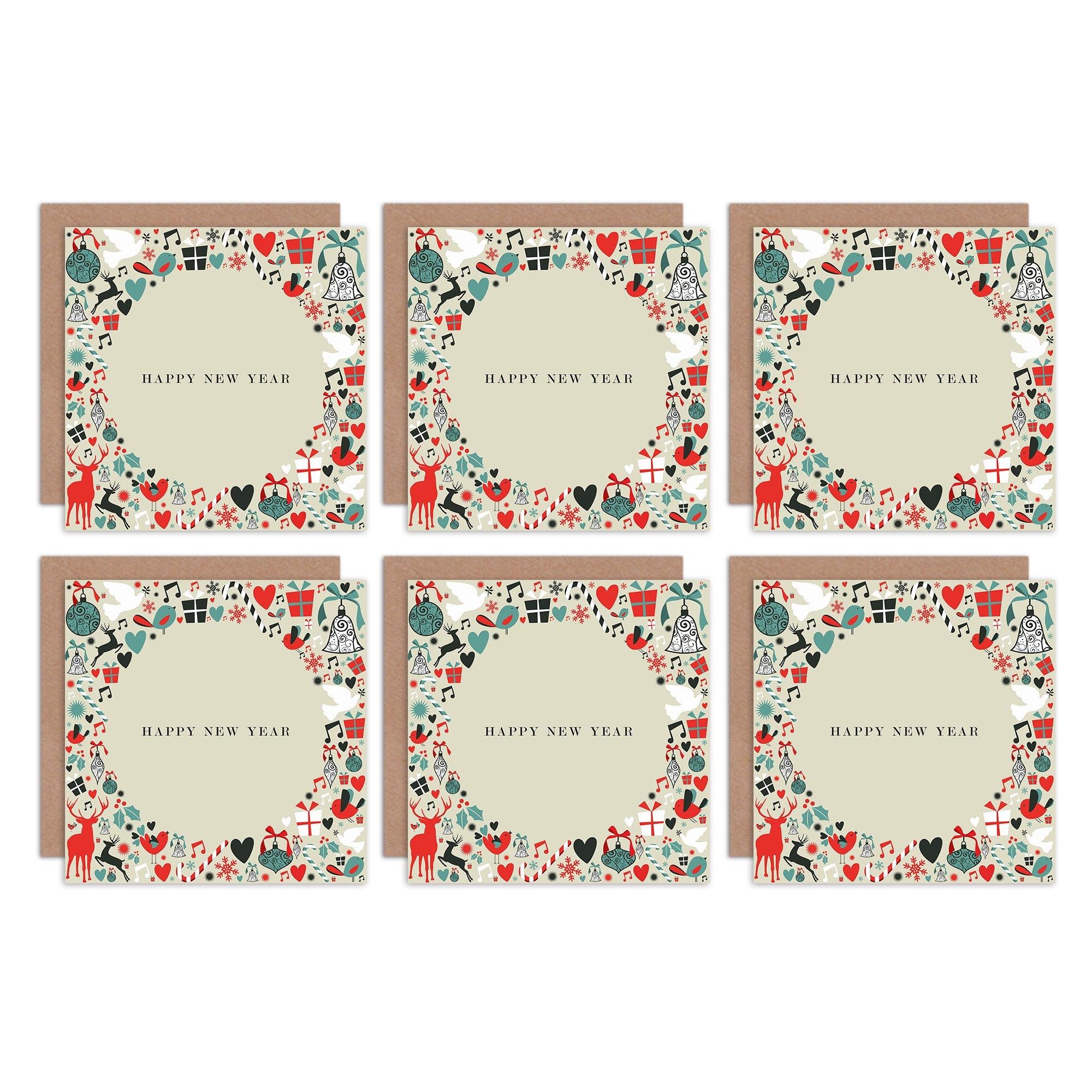 New Year Cards Multipack pack of 12 Happy New Year Cards For Family Friends