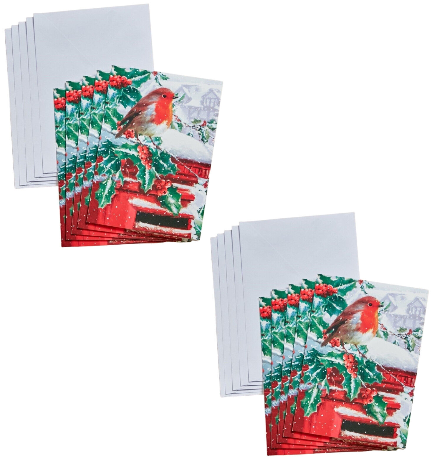 10 PACK XMAS CARDS | Christmas Robin Holly Snow 15cm x 10½cm | HAPPY NEW YEAR