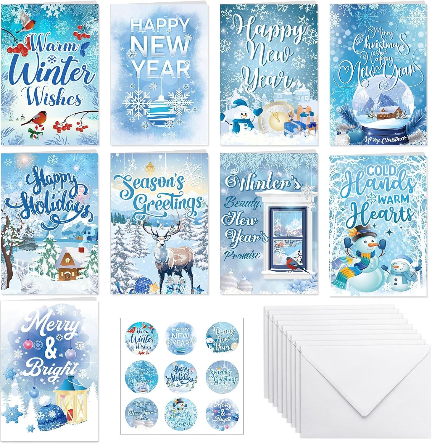 Merry Christmas and Happy New YEAR cards pack of 10, Cute Christmas cards x10