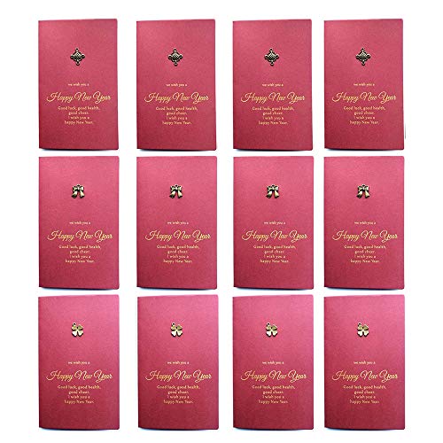 Shulaner 12 Pcs Happy New Year Greeting Cards and Envelopes, Hot Stamping Chinese New Year Card, Blanks, Retro Wishing Happy New Year Gift Cards for Partner, Friends, Dad, Mum