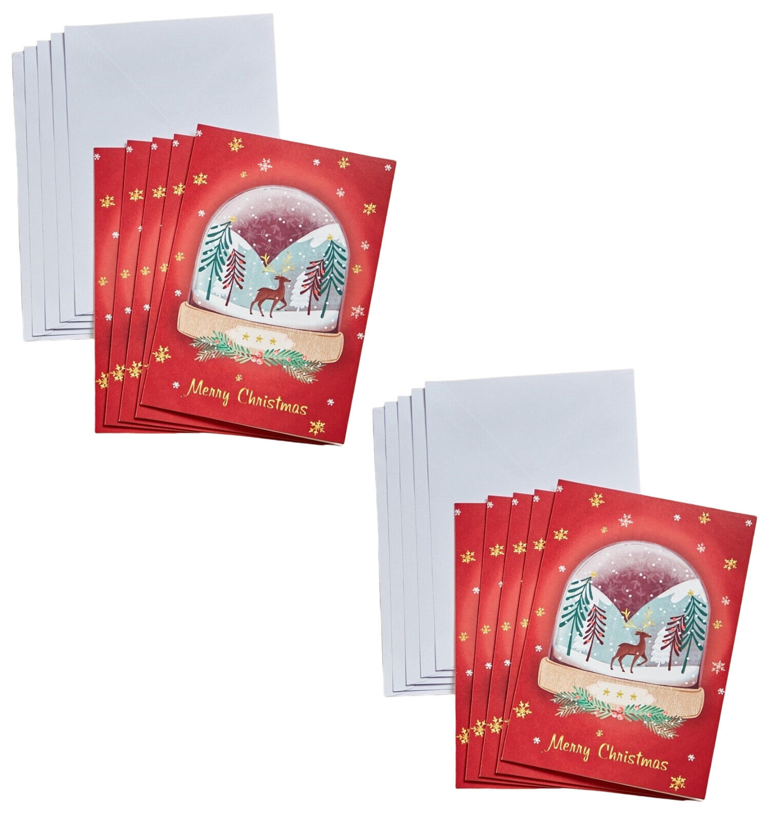 10 PACK XMAS CARDS | Christmas Snow Reindeer 15cm x 10½cm | HAPPY NEW YEAR