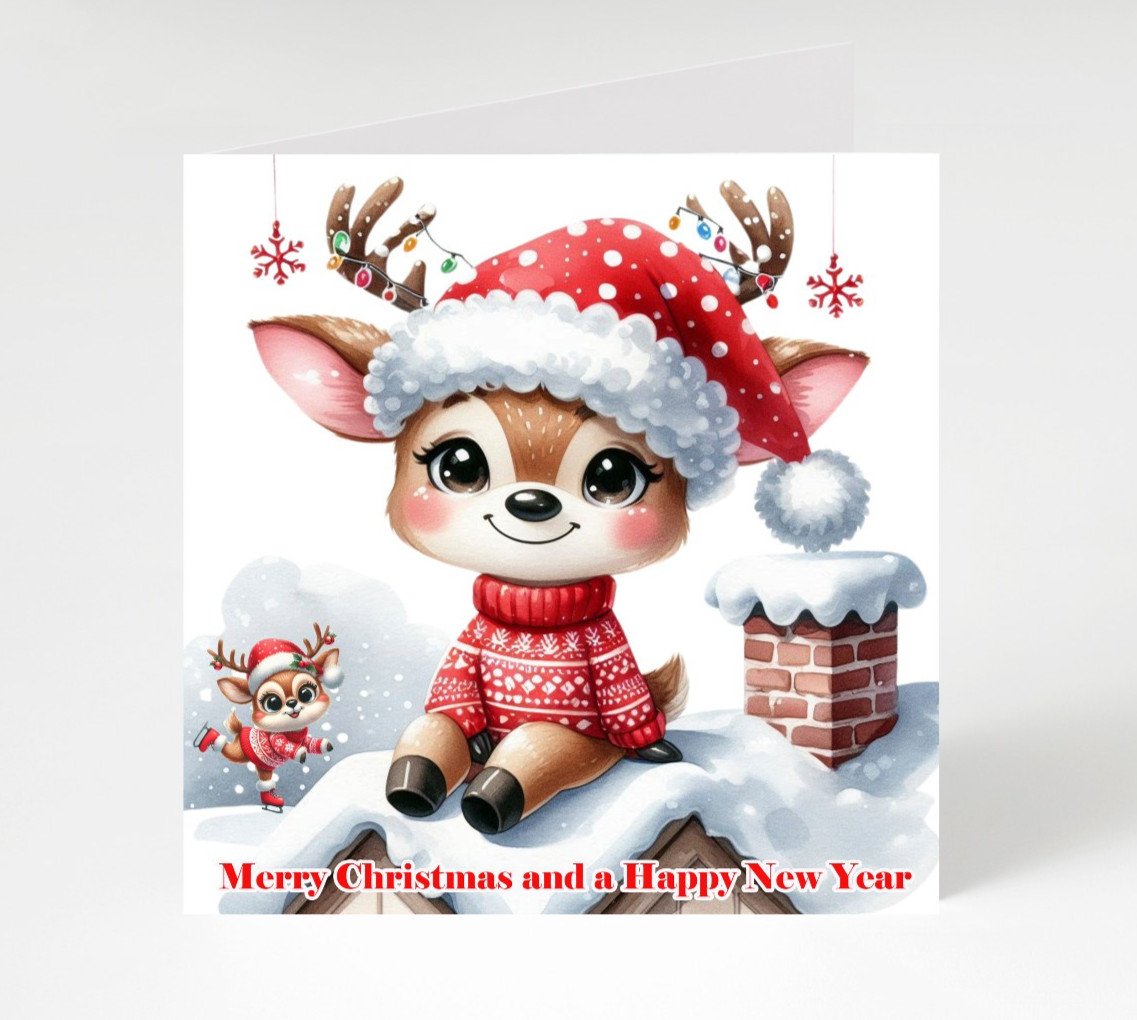Cute Reindeer Merry Christmas and a Happy New Year cards pack of 8