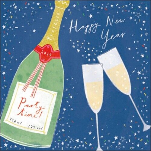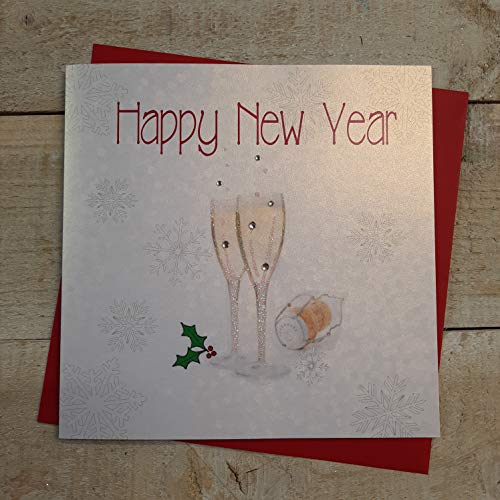 WHITE COTTON CARDS Happy Handmade New Year Card (Champagne Glasses, Code fp19)