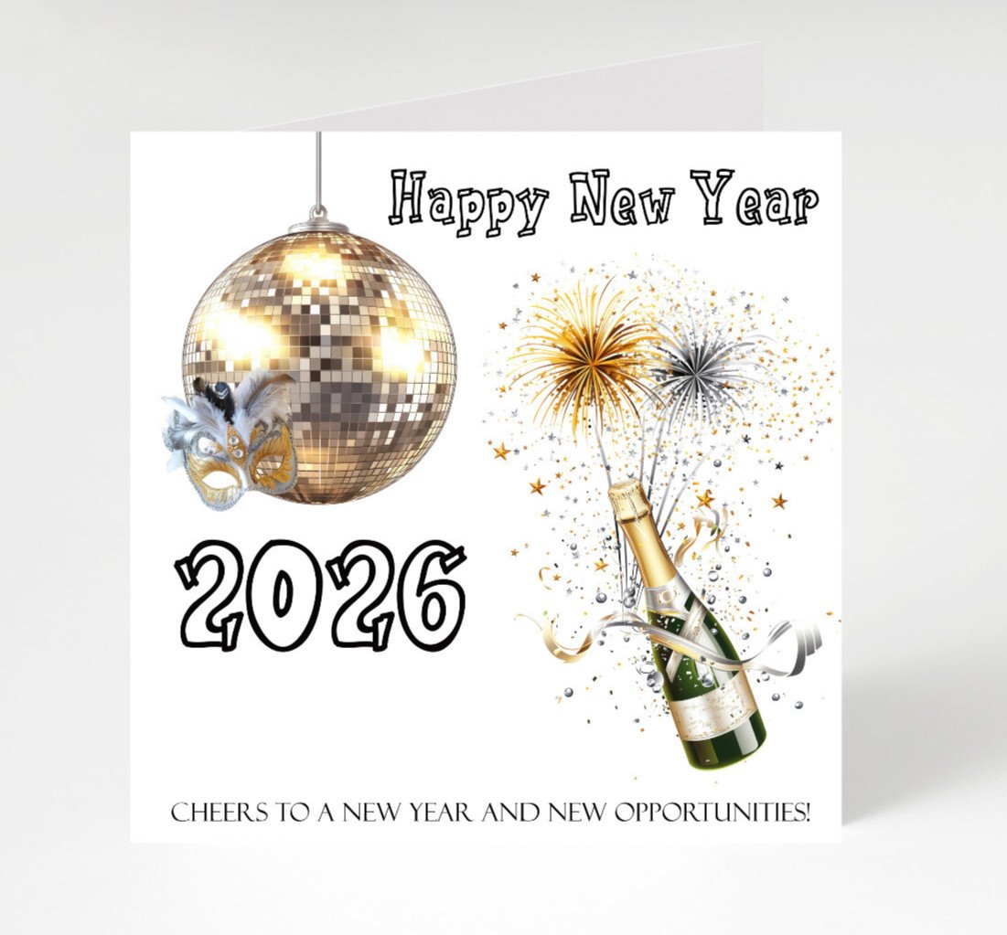Happy New year 2026, New Year 2026 pack of 6 cards, 6x New Year cards
