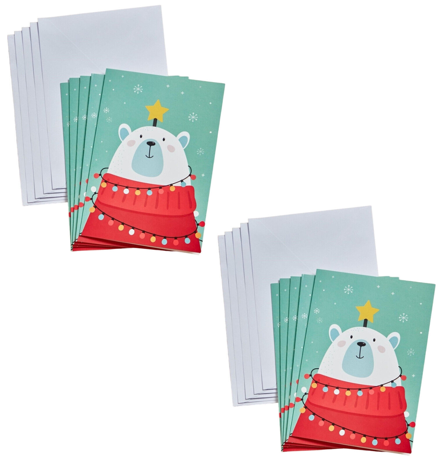 10 PACK XMAS CARDS | Christmas Polar Bear Baubles 15cm x 10½cm | HAPPY NEW YEAR
