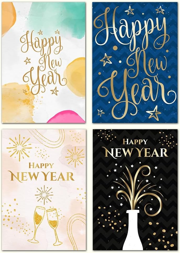 24 Pack Happy New Year Cards 2025, Multipack Greeting