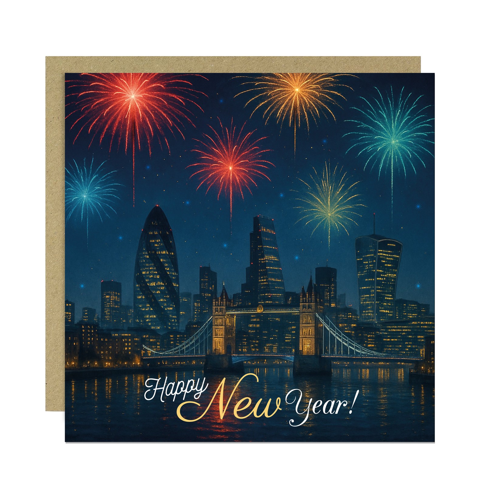 New Year London Firework Scene Card Happy New Year Cards For Friends and Family